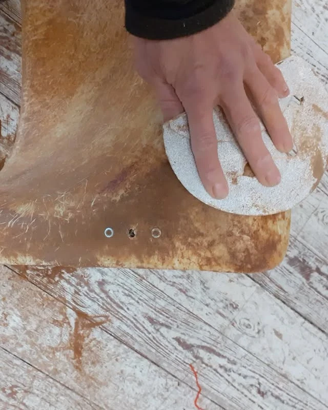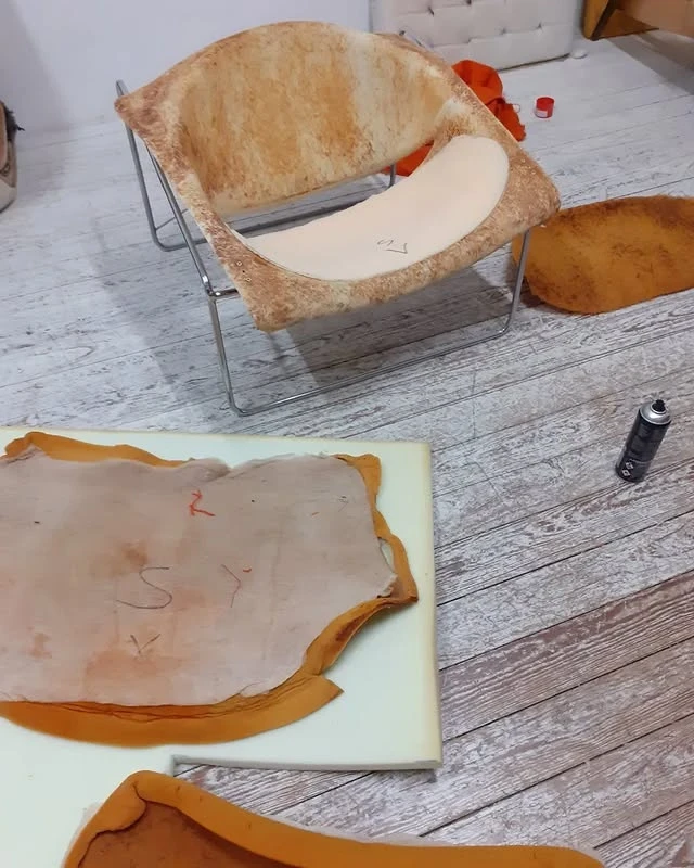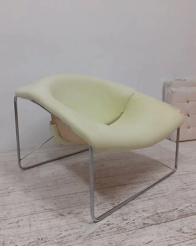 Die Restaurierung begann mit der Entfernung des alten Materials. Anschließend wurde das verchromte Metallgerüst poliert, um den ursprünglichen Glanz wiederherzustellen.