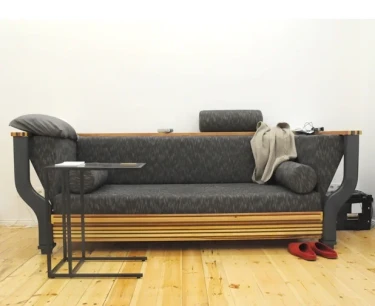 Das Sofa wurde in Zusammenarbeit mit Andremo entwickelt und zeichnet sich durch seine modulare Konstruktion aus. Die herausnehmbaren Elemente können je nach Bedarf eingesetzt oder entfernt werden, wodurch das Möbelstück sowohl als Sitzgelegenheit als auch als Liegefläche dient.