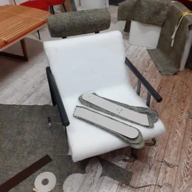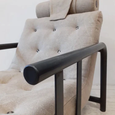 Der Stahlsessel zum Relaxen entstand in Zusammenarbeit mit Tobias Kretzschmar von TK-Designs, der die Metallarbeiten und individuelle Pulverbeschichtung übernahm.