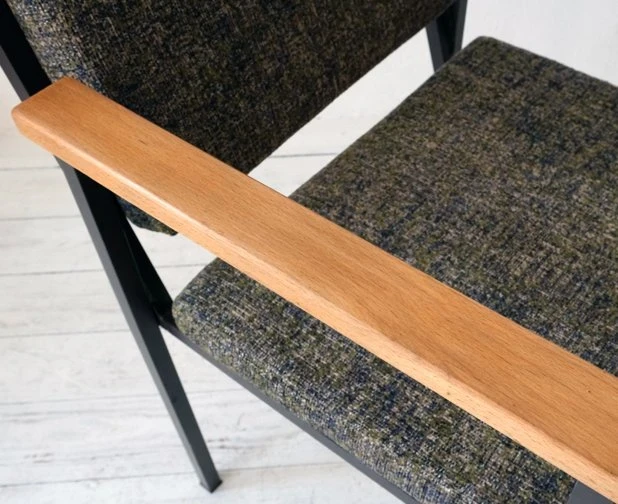 Vierkantstahl, lackiert, Armaufleger aus Buchenholz