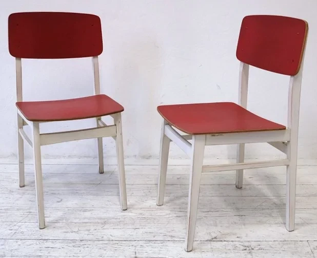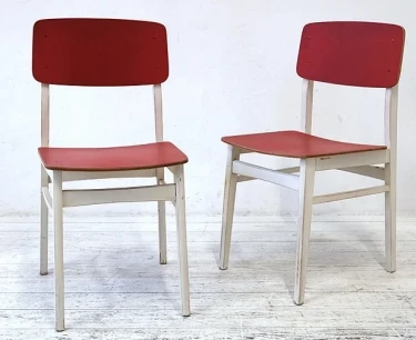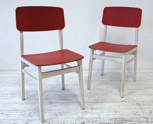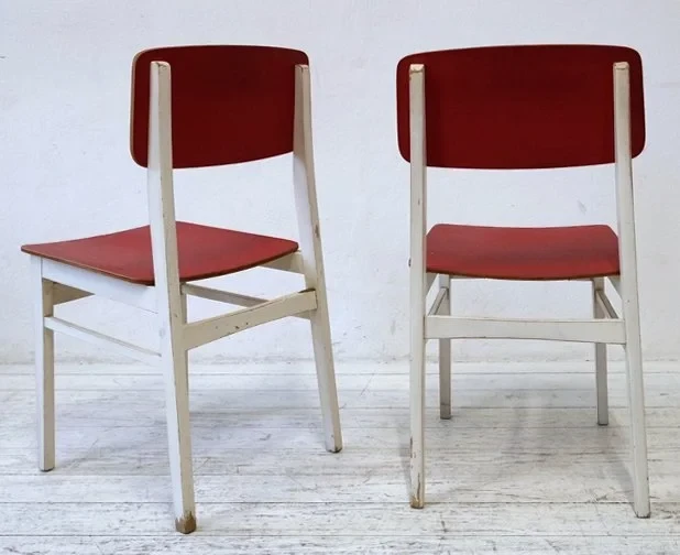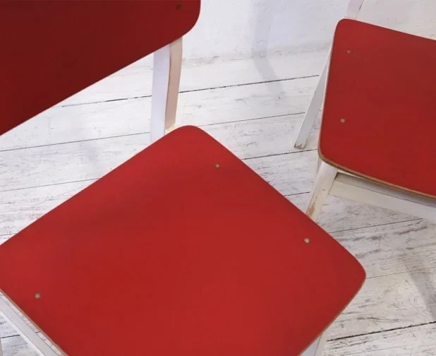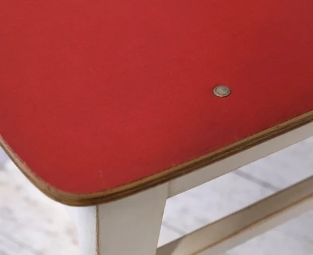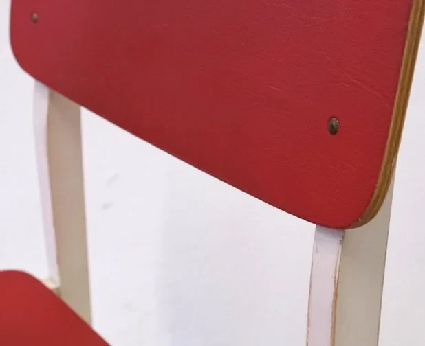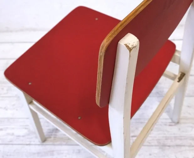 Buchenholz weiß lackiert/Sperrholz rot beschichtet